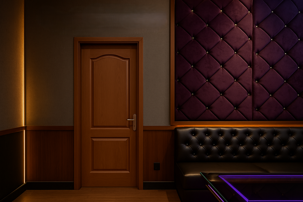 | Phòng karaoke kinh doanh | Cửa gỗ nhựa lõi đặc, vân gỗ đậm, cách âm cao |